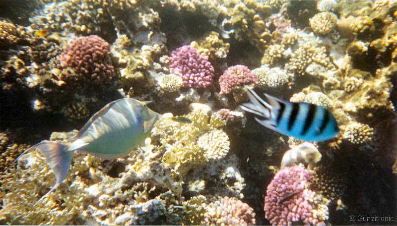 Kurznasendoktorfisch und Scherenschwanz-Sergeant